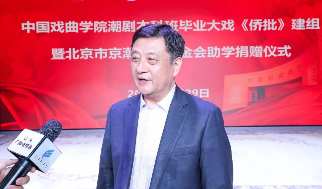 北京市京潮公益基金会主席陈才雄在现场接受汕头融媒集团记者采访表示,我是潮汕人,虽然一直在外打拼,但我忘不掉自己的根,我无比热爱我们的家乡文化。潮剧这朵“南国鲜花”,需要我们共同培育。我始终铭记实业报国与文化传承的双重使命,努力为潮汕文化的传承和创新多做些事情。北京潮商会身处首都,我作为会长,更需要勇于担当、扛起责任,用行动践行“从政治上看北京”的要求。以商弘文,以文兴会,这是我们商会的使命。