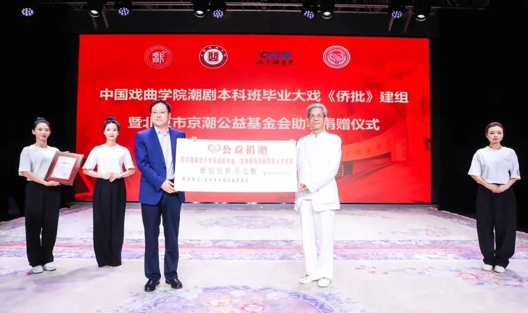 2025年6月22日晚,由中国戏曲学院、广东潮剧院联合创排,北京潮商会、北京市京潮公益基金会、北京中国戏曲学院教育基金会联合支持的中国戏曲学院首届潮剧本科班毕业大戏《侨批颂》在北京成功首演。据悉,这部以承载海外潮人集体记忆与家国情怀的“侨批”为题材的原创剧目,由李必友书记、尹晓东院长担任出品人,陈才雄会长作为联合出品人,以及多位领导、专家、教授亲自操刀,不仅填补了侨批题材戏曲创作的空白,更是“专业院校+社会力量”协同培养戏曲人才模式的重要成果。作为首部将“侨批”这一独特历史文化遗产系统搬上戏曲舞台的作品,《侨批颂》的首演,标志着潮剧在题材挖掘和艺术表现上取得重要突破。学子们以扎实的四年专业功底,演出反响热烈,赢得浪潮般的掌声,获得观众与专家的一致好评,吸引了各界关注。