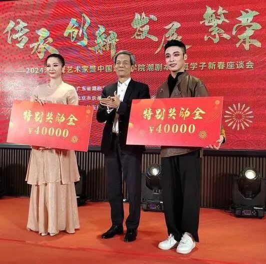 2024年,来自国戏潮剧本科班的两名青年演员携潮剧经典剧目登上了春晚舞台,轰动一时。陈才雄会长接受媒体采访表示,潮剧节目首次登上举国瞩目的春晚舞台,展示600年历史的“南国鲜花”时代风采。作为关注和支持潮剧发展的基金会,我们也为潮剧艺术后继有人欢欣鼓舞!并在2024年3月举行的2024潮剧老艺术家暨中国戏曲学院潮剧本科班学子新春座谈会上,亲自为登上央视春晚的吴嘉琳、蔡锦浩颁发专项奖励,同时向28名学生发放总额奖助学金,其中特别关注家庭困难学生的深度帮扶。