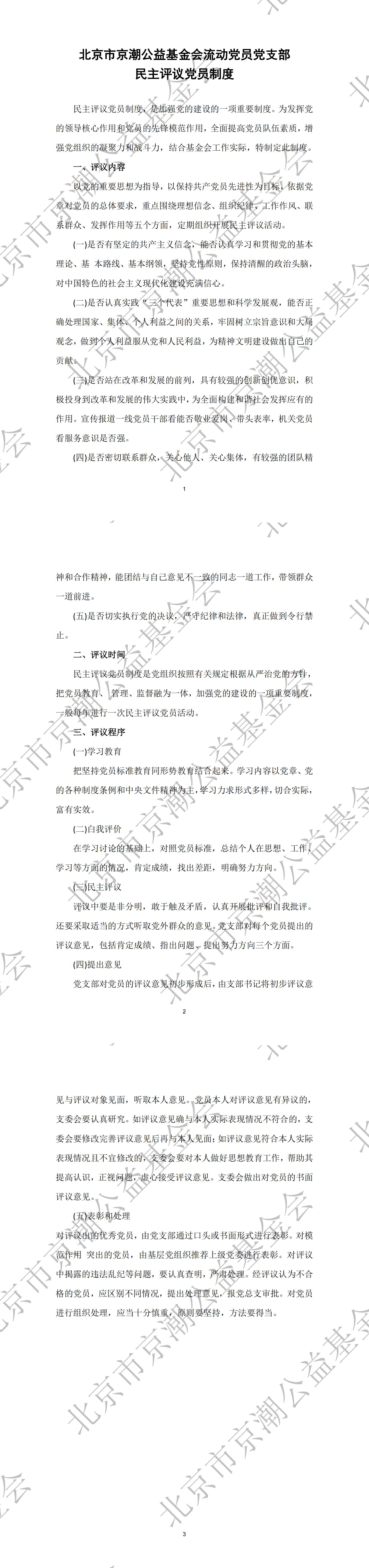 北京市京潮公益基金会流动党员党支部民主评议党员制度