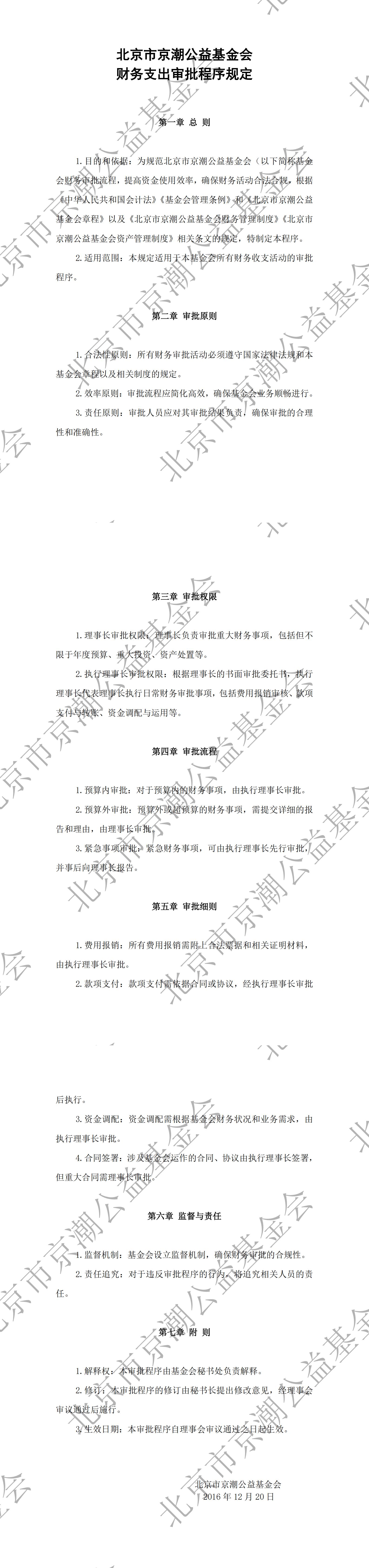北京市京潮公益基金会财务支出审批程序规定