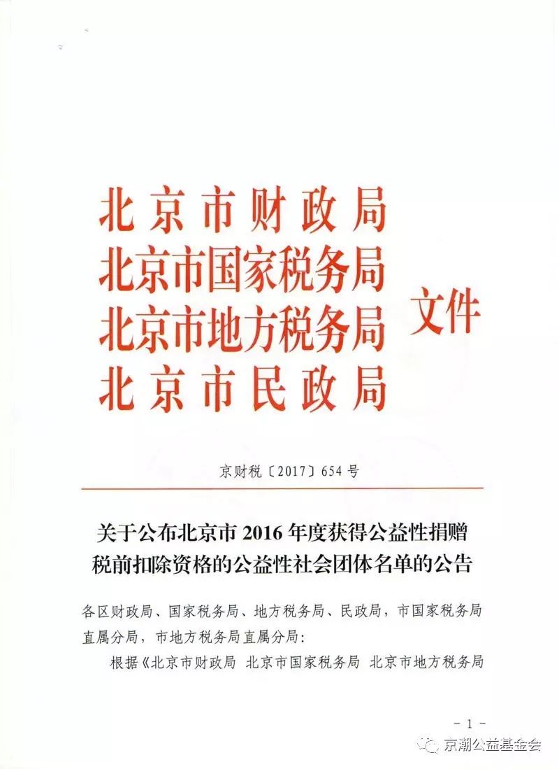 北京市京潮公益基金会获公益性捐赠税前扣除资格