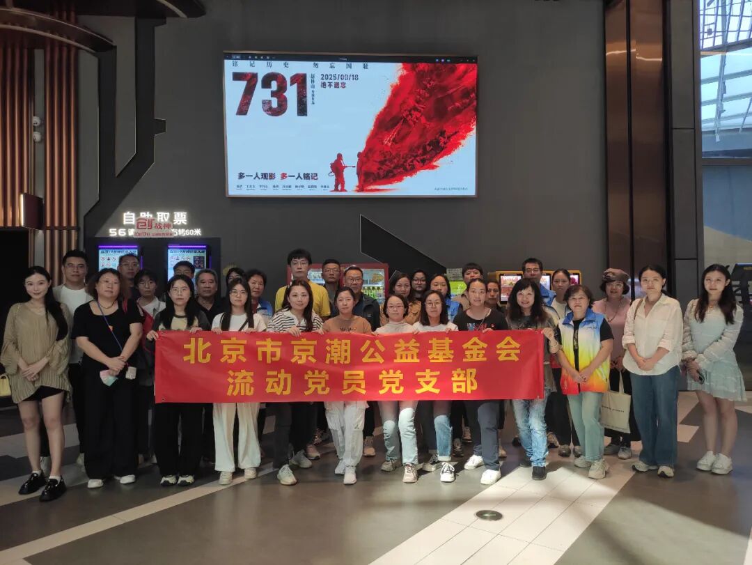 为纪念中国人民抗日战争暨世界反法西斯战争胜利80周年,深刻铭记历史、缅怀先烈、珍爱和平,北京市社会服务领域基金会第二联合党委于近日组织开展了爱国主义教育观影活动,集体观看电影《731》。北京市京潮公益基金会流动党员党支部积极参加此次观影活动。