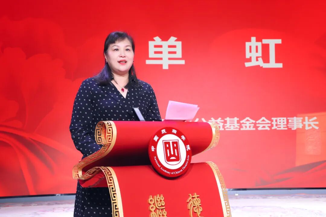 单虹代表北京市京潮公益基金会致辞表示,四年前,当我们与中国戏曲学院共同开启潮剧本科班的办学之路时,就深知这是一项“功在当代、利在千秋”的文化工程。如今,在中国戏曲学院老师的精心培育下,同学们刻苦学习发奋努力,取得了极为丰硕的成果:在央视舞台上绽放光彩、在国家以及北京市和广东省举行的大赛中屡获佳绩,在对外文化交流中也深得好评,还有两位学生成功考上了国戏研究生。我们对此倍感欣慰,这不仅是国戏“精耕细作育英才”的办学成果,更是潮剧艺术在新时代焕发活力的生动写照。